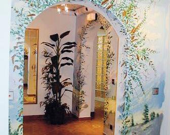 Relaxation room with warm ceramic bench