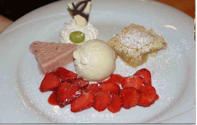 Beerengratin mit Weinschaumsoße, garniert mit Nuss-Eis