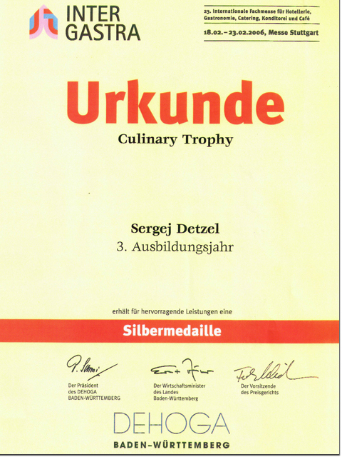 INTER GASTRA Urkunde DEHOGA Badenwürttemberg INTER GASTRA Urkunde DEHOGA Badenwürttemberg