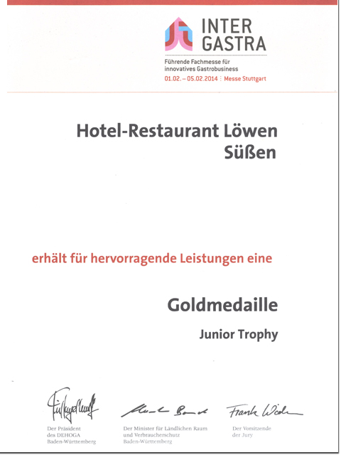 INTER GASTRA Führende Fachmesse für innovatives Gastrobusiness Goldmedaille INTER GASTRA Führende Fachmesse für innovatives Gastrobusiness Goldmedaille Junior Trophy